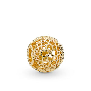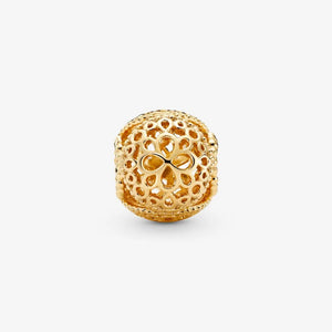 Must-have accessories for style-savvy women, charms reveal personal stories and unique style. This openwork iteration in Pandora Shine, our unique metal blend with 18k gold plating, is detailed with floral silhouettes that lend an airy feel to Pandora Moments bracelet. Keep your look natural and wear with other favourite flower charms from the collection.