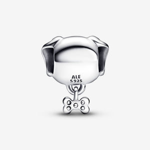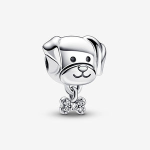 Let your love for your four-legged bestie shine with the Pet Dog & Bone Charm. Crafted from sterling silver, this retro piece with a modern touch is decorated with engraved lines on the face and sparkling pavé on the bone dangle. Wear it on a bracelet or charm holder to show your pooch’s special place in your heart.