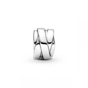 Choose sleek style with the Pandora Ribbons clip charm. Hand-finished in sterling silver, this clip charm has no silicone grip, so it will slide if not styled onto threads. With flat, polished ribbons wrapped around the clip in a textured criss-crossing pattern, this ribbon charm will bring a sleek, minimalist element to your look and pairs perfectly on a bracelet or necklace to make the rest of your favourite charms shine even brighter.