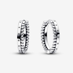 Say hello to your new elevated go-to pieces. Crafted from sterling silver, the Pandora Signature Logo & Beads Hoop Earrings feature a squared band with the Pandora logo and another band with a beaded profile. These versatile hoops are fully reversible, so you can face them both the same way or in different directions - it’s your signature style, so it’s all up to you.