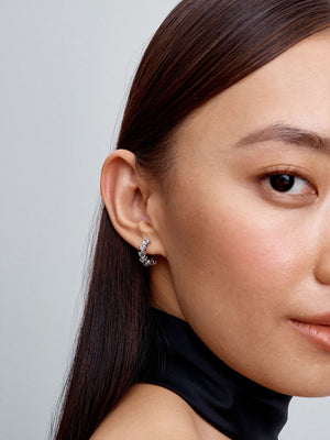 Listen with your hearts. Crafted in sterling silver, these sparkling open hoop earrings are inspired by the profound bonds of love, and make a meaningful gift for the special someone in your life.