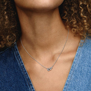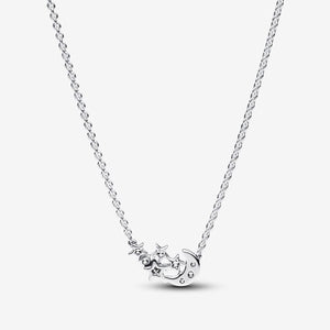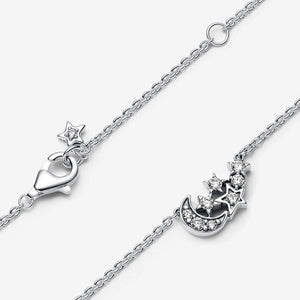 Shine bright with the Sparkling Moon & Star Collier Necklace, featuring celestial motifs of the moon and glittering stars inspired by the magic of a night sky. This cubic zirconia necklace can be adjusted to two lengths for your preferred look. At the closure dangles a five-pointed star set with a clear cubic zirconia. Wear this sterling silver necklace on its own or layer with your favorite chains to bring a touch of sparkle to your everyday. Length 45 cm.