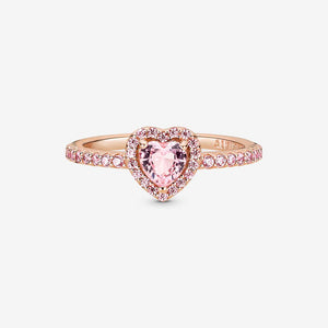 Add a sophisticated touch to your look with the sparkling elevated heart ring. The ring draws inspiration from the classic Pandora Timeless collection. Crafted from a 14k rose gold-plated unique metal blend, this piece features a green heart-shaped central, elevated stone. Clear cubic zirconia create the halo and decorate half of the ring band, while Pandora is engraved on the inside of the band. Gift this ring to someone who has captured your heart.
