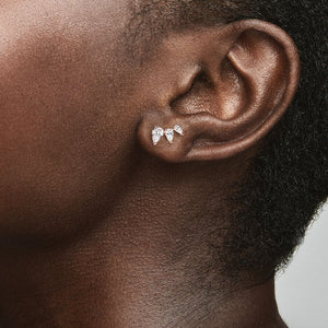 Get triple the sparkle with the Sparkling Pear Stud Earrings. These delicate 14k rose-gold plated earrings feature three pear-shaped stones of different sizes. Set in a curved row from smallest to largest, the stones are connected at the wider end, creating a dynamic silhouette along the tips, where the stones are accented by V-shaped prongs. A fresh twist on a classic stone shape, these earrings can be styled for an elegant occasion or an edgier look.