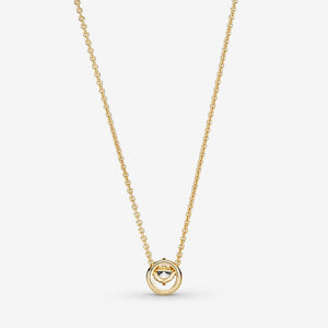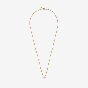Classic meets contemporary in the 14k gold-plated Sparkling Round Halo Pendant Collier Necklace. The traditional halo setting has been given a fresh update with an off-centered stone setting to create a unique silhouette. The chain length is adjustable, making this a versatile finishing touch to your outfit.