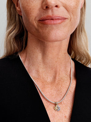 Share your light and love with our Splittable Sun & Moon Dangle Charm. The radiant 14k gold-plated half sun features sparkling stones to catch more light and the engraved message "My Sun." The crescent moon charm also shines with sparkling stones, celestial markings and the engraved message "My Moon." Wear them together to symbolise harmony, or give one to the person in your life who brings you balance.
