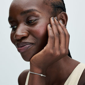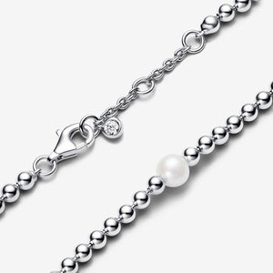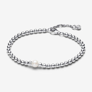 Embrace shine with our Treated Freshwater Cultured Pearl & Beads Bracelet in sterling silver. A central pearl, surrounded by polished metal beads, captures the essence of Pandora Timeless. A hint of sparkle from a cubic zirconia shines by the lobster clasp, bringing subtle shine. Versatile and symbolic, treated freshwater cultured pearls embody beauty, wisdom, and love. Please note each treated freshwater cultured pearl is unique and can vary in size and colour; normal wear and tear may occur with this material. Our freshwater cultured pearls are treated with bleaching and lustre enhancement.