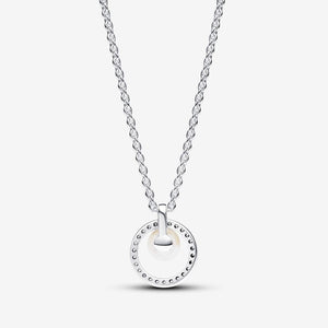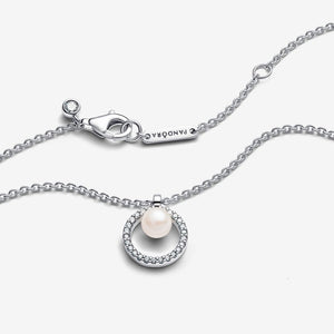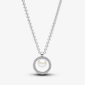 Level up your look with our Treated Freshwater Cultured Pearl & Pave Collier Necklace. Crafted in sterling silver, it features an adjustable 45 cm chain, adorned with a lustrous treated freshwater cultured pearl and sparkling cubic zirconia. The pearl pendant gracefully slides along the chain, showcasing Pandora's signature craftsmanship. Embrace timeless beauty and versatility. Perfect for special occasions or adding a touch of sophistication to everyday wear. Please note each treated freshwater cultured pearl is unique and can vary in size and color; normal wear and tear may occur with this material. Our freshwater cultured pearls are treated with bleaching and lustre enhancement. Length 45 cm.
