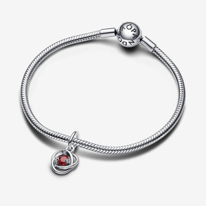 This intricate White Eternity Circle Dangle Charm is a must-have for your Pandora Moments collection. Crafted in lustrous sterling silver, it features an openwork infinity braid decorated with a central white bioresin mother of pearl cabochon, elegantly set with three clear cubic zirconia. The intricate design symbolizes eternity and adds an additional layer of meaning to the piece. Elevate your bracelet with this timeless piece or gift it as a representation of an everlasting bond.