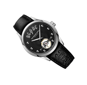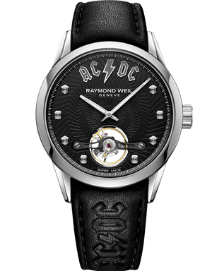 Measuring 42mm in diameter, the freelancer AC/DC Limited Edition is lined with a luminescent treatment. To reinforce the rock and roll attitude of the timepiece, the hours are marked with studded indexes.The black dial features a textured pattern recalling the AC/DC high voltage bolt graphics sitting adjacent to the iconic AC/DC typography placed at 12 o’clock. The powerful rock credentials are reaffirmed through the black leather strap, adorned with the AC/DC logo.The sapphire crystal case back is screwed down for added water resistance.