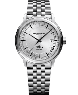 Housed in a 40mm polished steel case, the silver galvanic dial features the 13 Beatles’ album titles are written all around the bespoke dial, with a special “Help” index at 4 o’clock which recalls the cover of the iconic album released in 1965.Presented in an exclusive RAYMOND WEIL watch box bearing The Beatles iconic logo on top, the special edition timepiece expresses all of its personality through this impressive showcase.The inside of the custom watch box features the 13 album titles that are marked on the dial of the limited edition, paying tribute to the English rock band’s renowned musical repertoire.