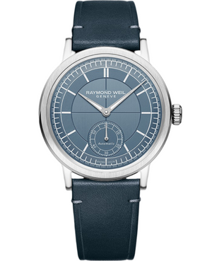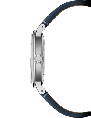 RAYMOND WEIL pays homage to the rich heritage and traditions of horology while celebrating the simplicity of refined design. The brand has naturally delved into the past, creating new timepieces that offer period charm combined with present-day practicality. The Denim Blue, freshly contemporary but also classically timeless, is being added to the millesime collection – a fitting follow-up to the inaugural model that won the watch industry’s coveted Challenge Prize at the last Grand Prix d’Horlogerie de Genève. The denim blue dial, located beneath a vintage-inspired sapphire crystal glass-box, has been refined to the highest degree. The hours and minutes are eloquently conveyed with silver-toned hands, lined with Super-LumiNova®. The sector dial presents the hours, minutes and seconds periods on discrete tracks, augmenting readability. A closer inspection of the dial reveals contrasting finishes, the hour track is smooth, the minute track is snailed and the central area of the dial is adorned with a delicate vertical brush. The millesime features a small seconds display at 6 o’clock, delineated with a neat recessed circlet, introducing a seemly play with depths, which is enriched with a tasteful selection of details. The bezel is decorated with a vertical satin-brush that contrasts wonderfully with the highly polished bevel nearby. This juxtaposition of two finishes reinforces the overall level of finishing. A sapphire caseback affords sight of the self-winding movement within and the “W-shaped” oscillating weight, RAYMOND WEIL’s horological signature. The navy blue genuine calf leather strap is enhanced with a unique W-stitched detail. As the name suggests, the collection is a grand vintage interpretation of the RAYMOND WEIL brand.