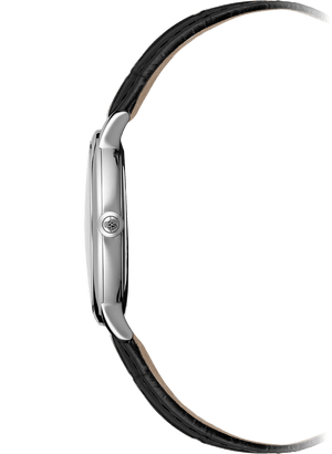 Equipped with a quartz movement, this toccata men’s watch features a sleek stainless steel 39 mm case with a date window at 3 o’clock. The silver lacquered and sunray satin-finished dial is set with applied Roman numeral indexes and has a railway-track chapter ring that aids readability. To complement this modern classic, alligator motifs have been added on the strap.Refined design and timeless materials: the toccata collection celebrates the artistic and musical spirit behind the Brand’s DNA. Following in the footsteps of the great composers, toccata promotes the Swiss horology of RAYMOND WEIL while respecting the tradition and heritage handed down from generation to generation within the family company.