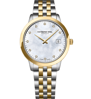 Entirely made of steel, this 34mm stainless steel quartz watch offers a white mother-of-pearl dial adorned with 11 sparkling diamonds as hour markers, and boasts a date window at 3 o’clock. Timeless and elegant, this toccata proves beauty is not always fleeting.Refined design and high quality materials: The toccata collection celebrates the artistic and musical spirit behind the Brand’s DNA. Following in the footsteps of the great composers, toccata promotes RAYMOND WEIL’s Swiss horology while respecting the tradition and heritage handed down from generation to generation within the family company. Water resistant up to 50 meters