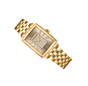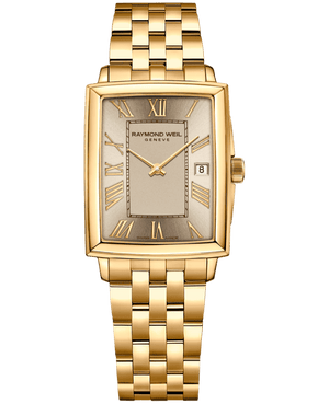 Inspired by the Art-Deco movement, the new vintage-inspired toccata watches encompass clean lines, sumptuous dials and are perfectly suited to any occasion.Housed in elegantly refined rectangular cases, these new creations exude a charming simplicity. Displaying merely the hours, minutes, and date, there is a welcome purity to each dial option. Each watch is equipped with a Swiss quartz movement, delivering precision and obviating the need for regular winding. With its sleek appearance, pure lines, and notable refinement, the Toccata champagne dial watch is perfectly suited to an array of social settings, while the model’s exquisite styling promises an enduring beauty. RAYMOND WEIL has employed its creativity to produce a range of models that promise to deliver eye appeal for many years to come. About the Toccata collection: This elegant and timeless collection celebrates the artistic and musical spirit behind the Brand’s DNA. Following in the footsteps of the great composers, toccata promotes RAYMOND WEIL’s Swiss horology while respecting the tradition and heritage handed down from generation to generation within the family company. Water resistant up to 50 meters
