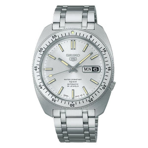 Seiko 5 Sports SKX series automatic limited edition mens watch SRPL91K1. Stainless steel case and bracelet with silver dial. Automatic movement. Water resistance up to 100 meters. Case size 38.2 mm. Dual-curved hardlex crystal. Three-fold clasp with push button release.