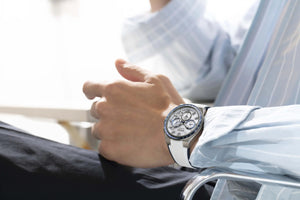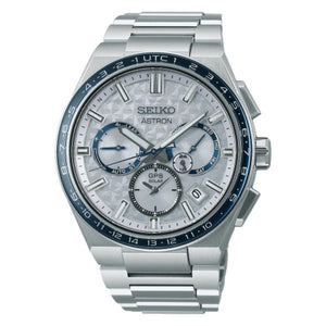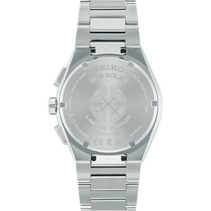 Stylish colors set this limited edition apart. The brightness of the titanium case is balanced by dark blue accents on the dial and bezel for a cool and clean look. The dial’s transparent crystal pattern imparts a refreshing quality to the design.In addition to a titanium bracelet, a reinforced two-tone silicone strap color-coordinated to match the watch is also included. 42.7mm case. Water resistance up to 100 meters. GPS solar movement. Super-clear coating sapphire crystal. Three-fold clasp with push button release.