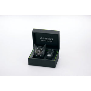 A stylish color sets this limited edition apart from other watches. Lime green accents on the dial and bezel add a touch of flair to the titanium case and black bracelet. On the dial, a pattern which appears as if it has been shredded by sharp claws, adding a wild powerful identity all its own.In addition to a titanium bracelet, a reinforced two-tone silicone strap color-coordinated to match the watch is also included. 42.7mm case. Water resistance up to 100 meters. GPS solar movement. Super-clear coating sapphire crystal. Three-fold clasp with push button release.