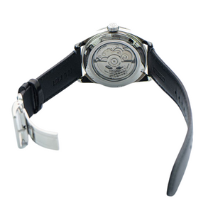 Seilo presage automatic mens watch SPB231J1. Stainless steel (super hard coating) case with a black horse Skin strap and grey dial. Automatic movement with manual winding. Case thickness: 11.1 mm, case diameter: 39.3 mm, case length: 47.2 mm. Water resistance upto 100 meters diver's. Sapphire crystal. Anti-reflective coating on crystal inner surface. Lumibrite on hands and indexes. Three-fold clasp with push button release. Screw case back. See-through case back. Other features. 24 jewels, date display, stop second hand function.