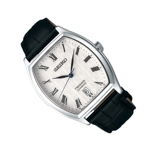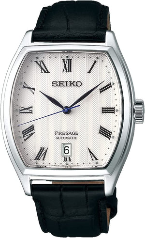 Seiko presage watch Zen Garden mens SRPD05J1. Japan is a land with a long and unbroken cultural history and therefore values tradition very highly. Long lasting beauty and long lasting performance express the deep desires of Japanese culture and are therefore at the heart of Japanese craftsmanship. Both in design and manufacturing values, Presage belongs firmly in this tradition and offers the very highest levels of reliability and durability over time. Each Presage watch is built to last for generations. Stainless Steel case with a black leather strap, white dial. Automatic movement. Case Size 37mm. Water resistant up to 200 meters. Sapphire crystal. Three fold clasp with push button release clasp.