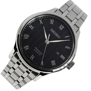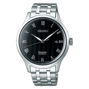 Seiko Japan Movement: Caliber 4R35. Seiko Automatic. Accuracy: +45/-35 sec per day Dial: Black with Karesansui ripple textured Luminous: N/A Date: 3 O'clock Case: Stainless steel Crown: Push-in. Signed Crown Lug: 20mm Crystal: Dual-curved Sapphire glass Strap: Stainless steel Water resistance: 30m Dimensions: 41.74mm in diameter, 47mm lug to lug, 11.74mm thick Power Reserve: ~41 hours