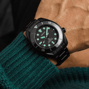 The Seiko Prospex Sumo SPB433J1 Limited Edition is part of Seiko's 'Black Series' as well as their extensive and legendary diving watch collection, and has received the heavyweight nickname of 'Sumo'. Another nickname that was, perhaps more kindly, bestowed upon it was 'MM200', which is short for MarineMaster 200 (200 for the water resistance, as the Marinemaster itself is 300m water resistant). The Marinemaster is Seiko's their high-end, no limits, diving watch that has garnered an incredible amount of praise over the years for being one of the best diving watches out there. That does set the bar pretty high for a watch at around 1/4th the price. Is this watch as good as a 'real' Marinemaster? No, but it does punch above its weight class, regardless of being a 'Sumo'. To start, it's a healthy 45mm in diameter, with a lug to lug distance of 52.6mm. That does mean it has a fairly substantial wrist presence, which is generally agreeable for a serious diving watch. 200m water resistance, a sapphire crystal and a high level of finishing are all part of the boxes that you can check on your 'diving watch wishlist'. What shouldn't be forgotten especially is the engine that powers this beast; the Seiko in-house Cal. 6R35 mechanical, automatic, movement, which features an impressive 70 hour power reserve.