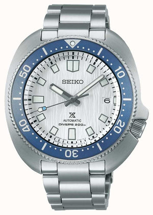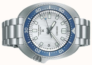 This specific design is inspired by Seiko’s 1970 Diver’s 150m watch – worn by Japanese explorer Naomi Uemura from 1974 to 1976 during his solo dog sled from Greenland to Alaska, a journey of 12,500km. This ‘Save the Ocean Special Edition,’ inspired by the ice of the North Pole, expresses the accumulation of time – linking the Antarctic history of Seiko diver’s watches with the time it takes for a glacier to form into its beautiful structure. The dial pattern and colour express the natural formations and pressure the glacier underwent during its long cooling period. Glaciers formed during the ice age, approximately 150 to 3 million years ago. Prospex is a combination of the words ‘Professional’ and ‘Specifications.’ These timepieces are designed to be practical, reliable and durable within extreme or everyday environments, for experts, sports lovers and adventure seekers alike. Since launching Japan’s first diver’s watch in 1965, Seiko’s innovative watchmaking has changed global dive watch standards. Seiko donates proceeds from Save The Ocean models to sea conservation organisations. Stainless steel (super hard coating) case with stainless steel bracelet, white dial. Automatic movement. Case size 42.7mm. Water resistance up to 200 meters. Curved sapphire crystal. Three fold clasp with secure lock , push button release with extender.