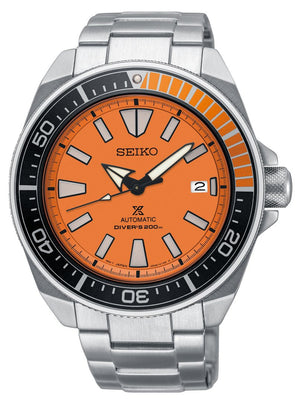 Date display, highly luminous hands and markers treated with Lumibrite for awesome low light visibility, a screw down offset crown, a uni-directional diving bezel with luminous PIP at 12:00, Hardlex mineral crystal and a solid etched, screw-down case back. The 4R35 Seiko movement is self-winding and it can be hand wound and hacked. The movement has a 41 hour power reserve. Case size 43.8 mm. Water resistance upto 200m.