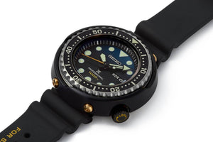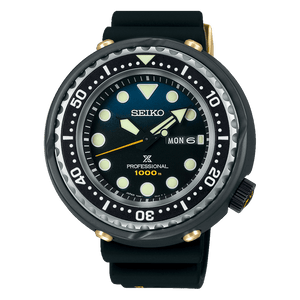 Seiko prospex limited edition quartz mens watch S23635J1. Titanium case with a Silicone strap, black dial. Case size 49.4 mm. Water resistance upto 1000 meters. Quartz movement. Sapphire crystal.