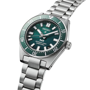 Seiko Prospex Sea automatic special edition mens watch SPB501J1. Stainless steel case and bracelet with emerald-green gradation dial inspired by the shimmering light and rippling surface as seen from underwater. Water resistance up to 300 meters. Curved sapphire crystal with Anti-reflective coating on inner surface. Three-fold clasp with secure lock & push button release, solid & slide adjuster.