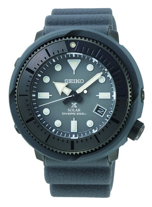 Seiko prospex solar men's watch SNE537. Grey hard-coating case with a grey silicone strap, grey dial. Solar movement. Hardlex crystal. Buckle clasp. Round case shape. Case size 46.7 mm. Water resistant at 200 m.