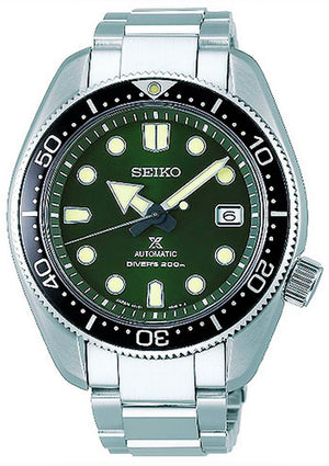 Seiko prospex special edition automatic diver mens watch SPB105J1. Stainless steel (super hard coating) with stainless steel bezel. Stainless steel bracelet and green dial. Case thickness: 13.1 mm, case diameter: 44 mm, case length: 51 mm. Water resistance upto 200m / 660ft diver's. Automatic movement with manual winding capacity. Accuracy +25 to -15 seconds per day. Sapphire crystal. Anti-reflective coating on crystal inner surface. Lumibrite on hands and indexs. Three fold clasp with secure lock, push button release with extender. Screw case back. Screw-down crown. Unidirectional rotating bezel. Other Features: 23 jewels, date display, stop seconds hand function.