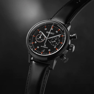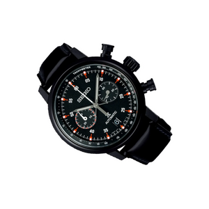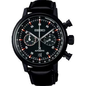 This Seiko watch has a stainless steel case 42.5 mm in diameter and is fitted with a leather strap. Inside the case lies a Seiko Instruments Inc. movement and the watch features a sapphire crystal. The watch is 10 ATM. This means the watch is suitable for swimming.