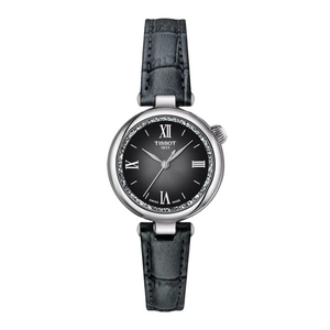 The defining features of this collection include the domed case, reminiscent of a finely cut gem. Designed with both comfort and durability in mind, this watch captivates with its beauty and is built to stand the test of time. Its End-of-Life quartz battery ensures the watch will let you know when it’s time for a change, so you’re never caught off guard. The quartz movement, perfected by Tissot, delivers unmatched reliability, ensuring that this timepiece remains an enduring companion, accompanying you on your journeys for years to come. Stainless steel case and bracelet with grey leather strap. Water-resistant up to a pressure of 5 bar (50 m / 165 ft). Domed scratch-resistant sapphire crystal. Butterfly clasp with push-buttons.