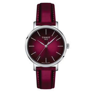 The Tissot Everytime is an understated, pure and chic timepiece suiting the preferences of modern wearers. The Everytime comes in a variety of dial designs and strap options, allowing you to express yourself. With this Tissot timepiece, every time is your time. Finally, the interchangeable quick release bracelet system offers the possibility to change bracelets without any tool, for maximum versatility. Stainless steel case with pink synthetic strap, graded pink black dial. Quartz movement. Case size 34 mm. Water resistance up to 50 meters. Scratch resistant sapphire crystal. Standard buckle clasp.