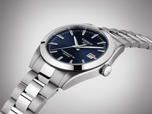 The Tissot Gentleman is a multi-purpose watch, both ergonomic and elegant in any circumstance. It is equally suitable for wearing in a business environment, where conventional dress codes apply, as at the weekend, when it adapts easily to leisure activities. As part of the life of a modern, active man, the Tissot Gentleman becomes the perfect companion for every day, every occasion and every style. Case size 40 mm. Water resistance up to 100 meters.