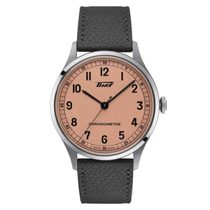 Rediscover the unique charm of the 1930s with the Tissot heritage gent auto COSC 1938. Its sandblasted dial, highlighted by embossed arabic numerals, speaks to the simplicity and distinct design of yesteryears. Protected by a 316L stainless steel casing and offering water resistance up to 50m, it's a dependable partner for everyday life. The COSC-certified 2824-2 movement guarantees consistent accuracy, while the classic grained leather strap offers both comfort and style. Sized at 39mm, it's a refined choice for aficionados of craftsmanship and history. Domed scratch-resistant sapphire crystal with antireflective coating. Interchangeable quick release bracelet, Standard buckle