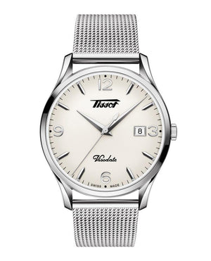 Back in the 1950s, Tissot celebrated its centenary with a series of innovations ? one of which was the integration of a date function to the automatic mechanism in a watch called Visodate. The Tissot Heritage Visodate translates nostalgia into contemporary timepieces dedicated to detail. A gently curved dial mirrors the domed sapphire glass, both geared to showcasing a clearly visible date. Historical Tissot logos on the dial, case back, crown and buckle are a bridge between the past and present. 40mm stainless steel case. Domed scratch-resistant sapphire crystal. Swiss quartz movement.