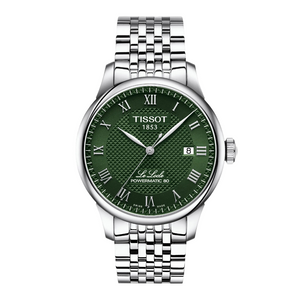 The Le Locle collection first debuted in 2003 to commemorate the 150th years of the brand. This timepiece is a piece of history, embodying the spirit of innovation that has defined Tissot for over a century. This model features a green dial and is equipped with interchangeable quick-release bracelets. All watches have the beautiful clous de Paris “guilloche” dial in the form of small pyramids a detail that really makes the difference. The interplay of polished and brushed finishes on the links creates a captivating visual rhythm, catching the light with every movement. This watch embodies the charm of Swiss heritage, with the name "Le Locle," inscribed in italics on the face, adds a sophisticated touch, inviting you to celebrate your roots. The latest model features cutting-edge Nivachron Spring Balance technology, which significantly mitigates the effects of magnetic fields while also being resistant to shocks, aging, and temperature variations. This gentlemen’s version is further enhanced by the COSC (Contrôle Officiel Suisse des Chronomètres), a distinction awarded to only a select few Swiss watches each year, underscoring the watch’s exceptional accuracy and quality.