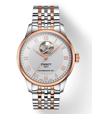 Tissot Le Locle Powermatic 80 Open Heart T-Classic Automatic Men's Watch T0064072203302. Stainless steel case and bracelet with silver dial. Automatic movement. Case size 39.3mm. Water resistance up to 30 meters. Scratch resistant sapphire crystal. Butterfly clasp with push buttons.