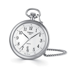 The Tissot Lepine Pocket Watch combines history and tradition with modern expertise, maintaining the vintage touch and the classic round pocket watch shape. This collection offers a classic round pocket watch with the option of mechanical or quartz. Chromium plated brass case With white dial. Quatrz movement. Case size 53 mm. Mineral crystal.