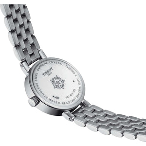 The Tissot Lovely is a feminine timepiece with a gorgeous, delicate small case. It can even be worn loosely and layered as a bracelet. This is a truly lovely timepiece with completely irresistible charm. Stainless steel case and bracelet with white mother of pearl dial. Quartz movement. Case size 19.5 mm. Water resistance up to 30 meters. Scratch resistant sapphire crystal. Butterfly clasp with push buttons.