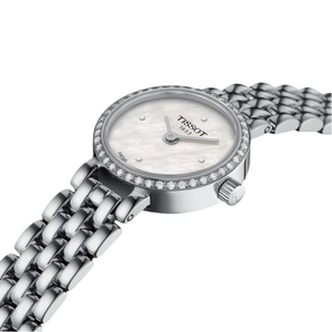 The Tissot Lovely is a watch of refined elegance and timeless design. All Tissot Lovely watches feature a scratch-resistant sapphire crystal and are powered by a precise Swiss Made quartz movement, so you can keep up with time, day and night. This model features a 316L stainless steel case. A diamond forms the hour markers at 12, 3, 6 and 9 o'clock. The watch also features a bezel set with an additional 42 diamonds for sparkling brilliance. The solid yet flexible 316L stainless steel bracelet holds the Tissot Lovely elegantly and securely on the wrist.