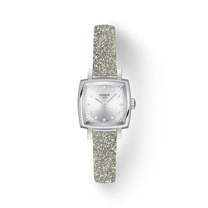 Created as a tribute to Tissot petite ladies watches from the 60's, this glitter pattern and red colour under the strap is the ideal gift for the end-of-the year celebration. The sapphire glass is faceted to give the watch an original vintage and charming feel. May your Christmas Eve sparkle and your Christmas day shine. Stainless steel case with grey Synthetic strap, silver dial. Quartz movement. Case size 20 mm. Water resistance up to 30 meters. Scratch-resistant sapphire crystal. Interchangeable quick release bracelet, standard buckle.