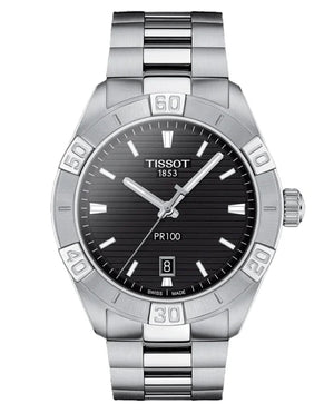 The Tissot PR 100 is a classic watch destined to be worn often and for every occasion. It features the simple and elegant face the collection is loved for, with the pared-back aesthetic symbolizing luxury, quality and classic style. Case size 42 mm. Water resistance up to 100 meters.