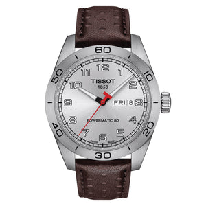 The PRS 516 is simply the most prestigious sports watch within the Tissot collection. This timepiece dates back to 1965, featuring design details inspired by classic sports cars including a perforated bracelet and piston shaped pushers. The PRS 516 is truly a pioneer watch that will never go out of style. Stainless steel case with a silver dial, brown leather strap. Automatic movement. Case size 42mm. Water resistance up to 100 meters. Scratch resistant sapphire crystal with antireflective coating. Interchangeable quick release bracelet. Butterfly clasp with push buttons.