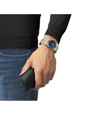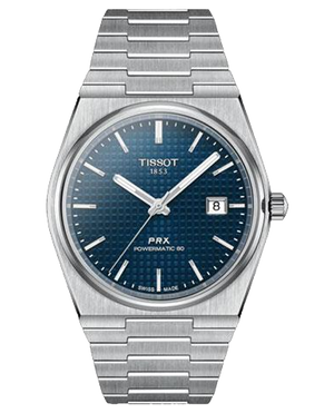 If you're looking for a slim, smooth watch with an authentic 70s feel, look no further than the PRX Powermatic 80. Created for those with an eye for design and packed with twenty-first-century features in a Tissot case shape from 1978, the PRX is a must-have on every watch fan's wish list. The self-winding Powermatic 80 movement delivers reliability and precision thanks to the innovative Nivachron hairspring. With 80 hours of power reserve, it's a modern movement designed to keep pace with busy lifestyles. Stainless steel case and bracelet with blue dial. Case size 40mm. Water resistance up to 100 meters. Scratch-resistant sapphire crystal with anti-reflective coating. Butterfly clasp with push buttons.