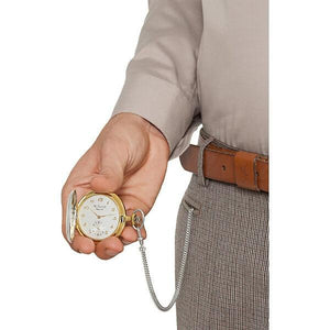 The Tissot Savonnette collection offers magnificent pocket pieces that demonstrate the craftsmanship used back in the day, providing them with that hint of nostalgia. These pieces feature the historical logo of the brand, evoking the great history and tradition Tissot is part of. Many details and models are available to suit individual personalities. Case size 50 mm.