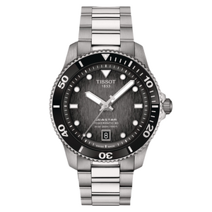 This updated edition of one of Tissot's main collections now introduces a 40mm casing option with the Powermatic 80 at its heart. For this new release, the casing has undergone a subtle transformation, incorporating a notch along its case edges, resulting in a more compact and sophisticated appearance. These timepieces are perfect for those in search of a sporty yet assertive accessory, offering water resistance up to 1000 feet (300 meters) and improved visibility in dim conditions thanks to the Super-LumiNova® coated hands and hour markers. This release features five distinct models, varying in dial colours and finishes from stainless steel to bi-colour combinations, including unique blue to black gradients and exclusive black PVD-coated options. Each variant delivers a unique aesthetic while maintaining the collection's signature sporty yet bold appeal.
