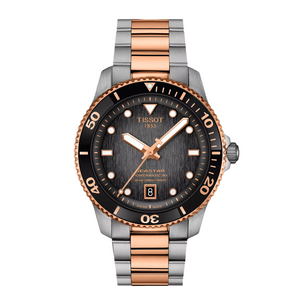 This updated edition of one of Tissot's main collections now introduces a 40mm casing option with the Powermatic 80 at its heart. For this new release, the casing has undergone a subtle transformation, incorporating a notch along its case edges, resulting in a more compact and sophisticated appearance. These timepieces are perfect for those in search of a sporty yet assertive accessory, offering water resistance up to 1000 feet (300 meters) and improved visibility in dim conditions thanks to the Super-LumiNova® coated hands and hour markers. This release features five distinct models, varying in dial colors and finishes from stainless steel to bi-color combinations, including unique blue to black gradients and exclusive black PVD-coated options. Each variant delivers a unique aesthetic while maintaining the collection's signature sporty yet bold appeal.
